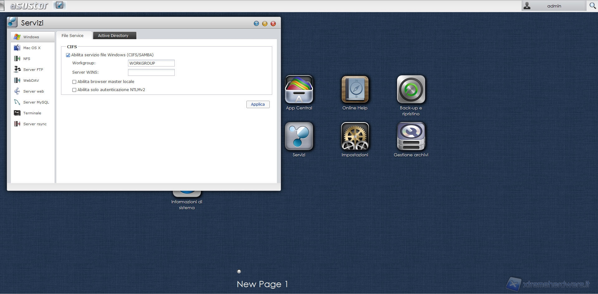 La quart’ultima icona presente sul desktop apre il pannello dei servizi attivabili e disponibili sull’Asustor AS-602T.